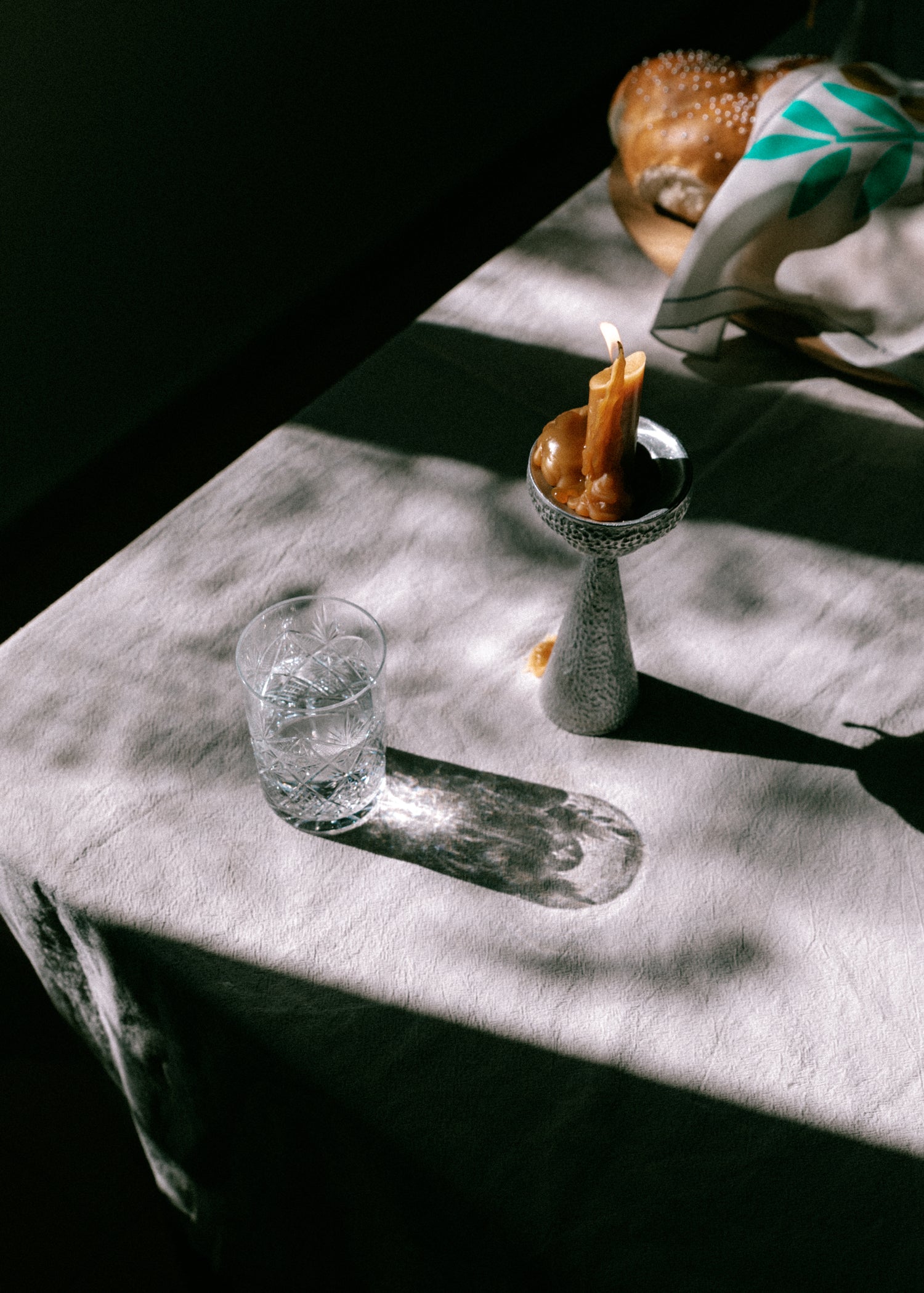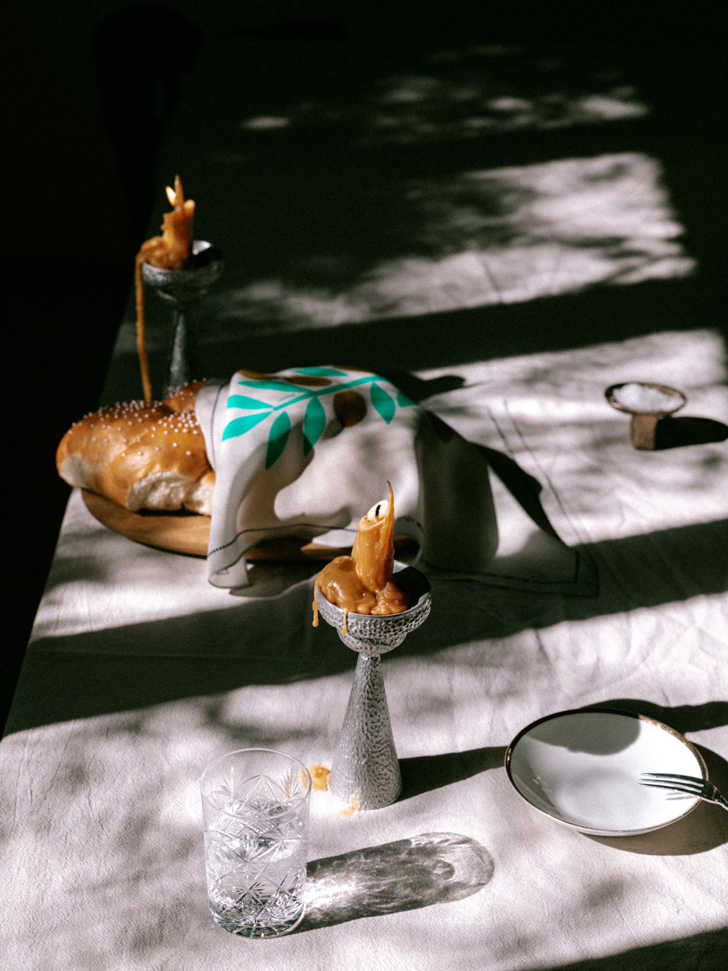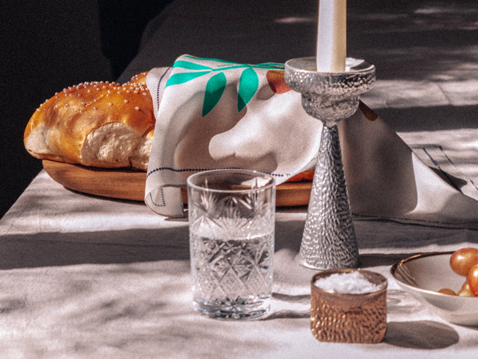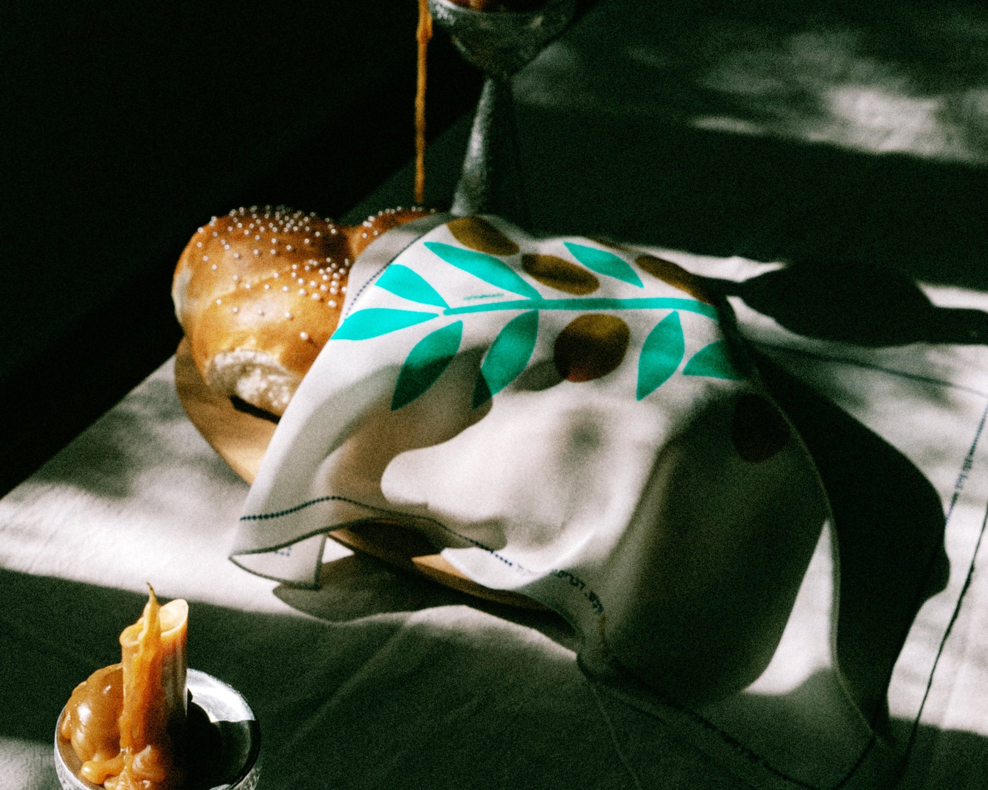 A cover that brings subtle richness, color, and movement to your Shabbat table.