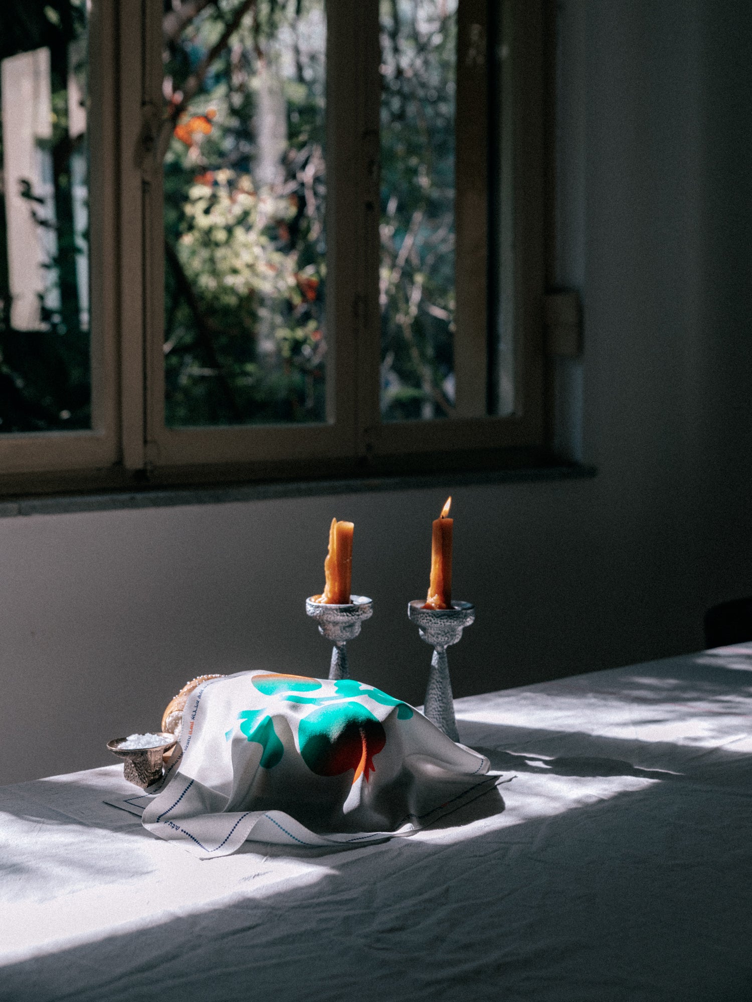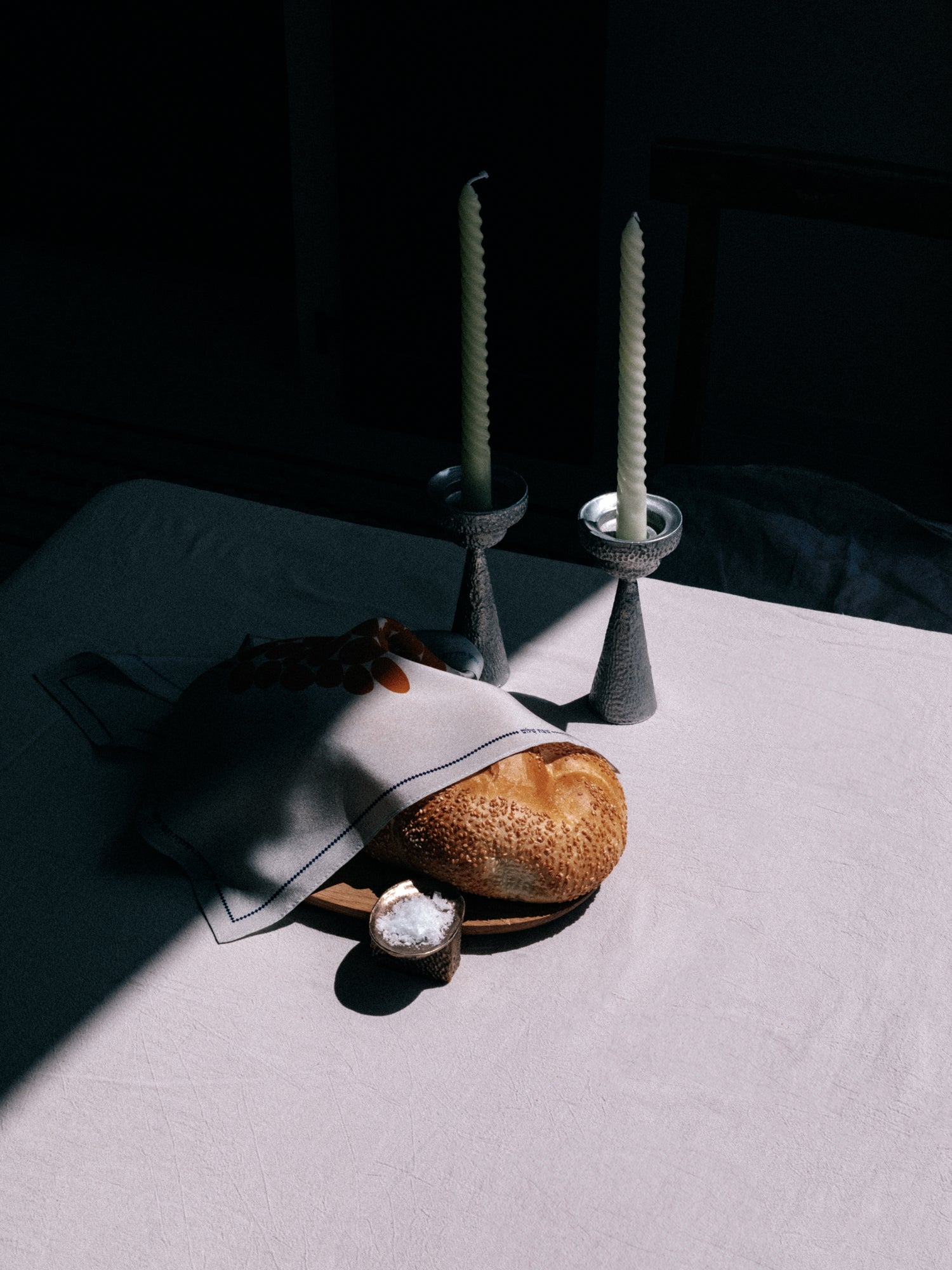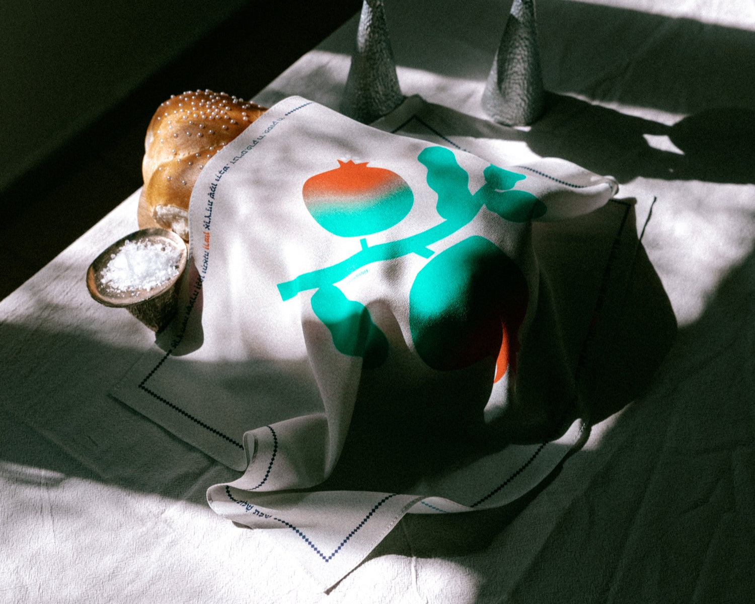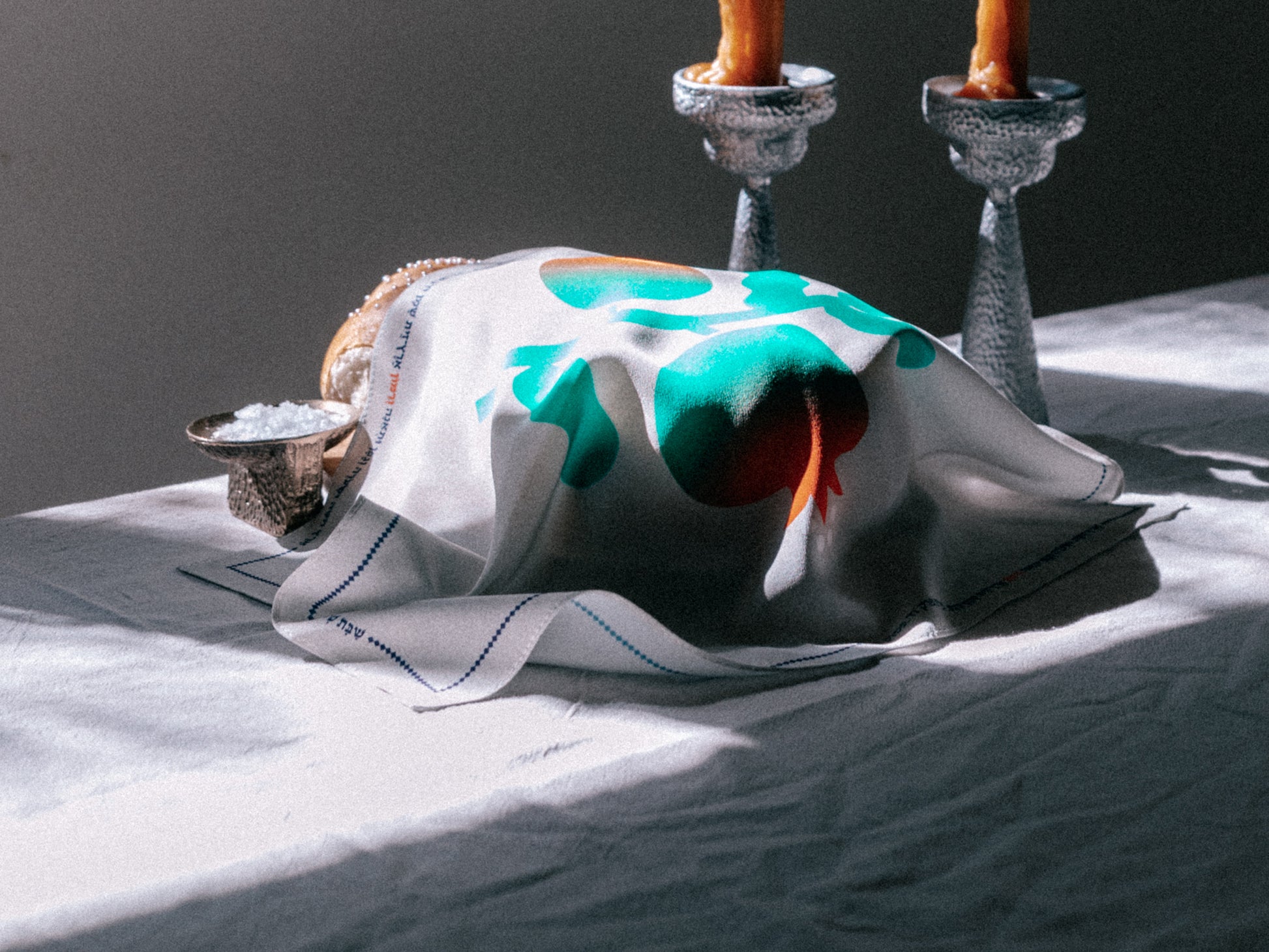 A cover that brings subtle richness, color, and movement to your Shabbat table.