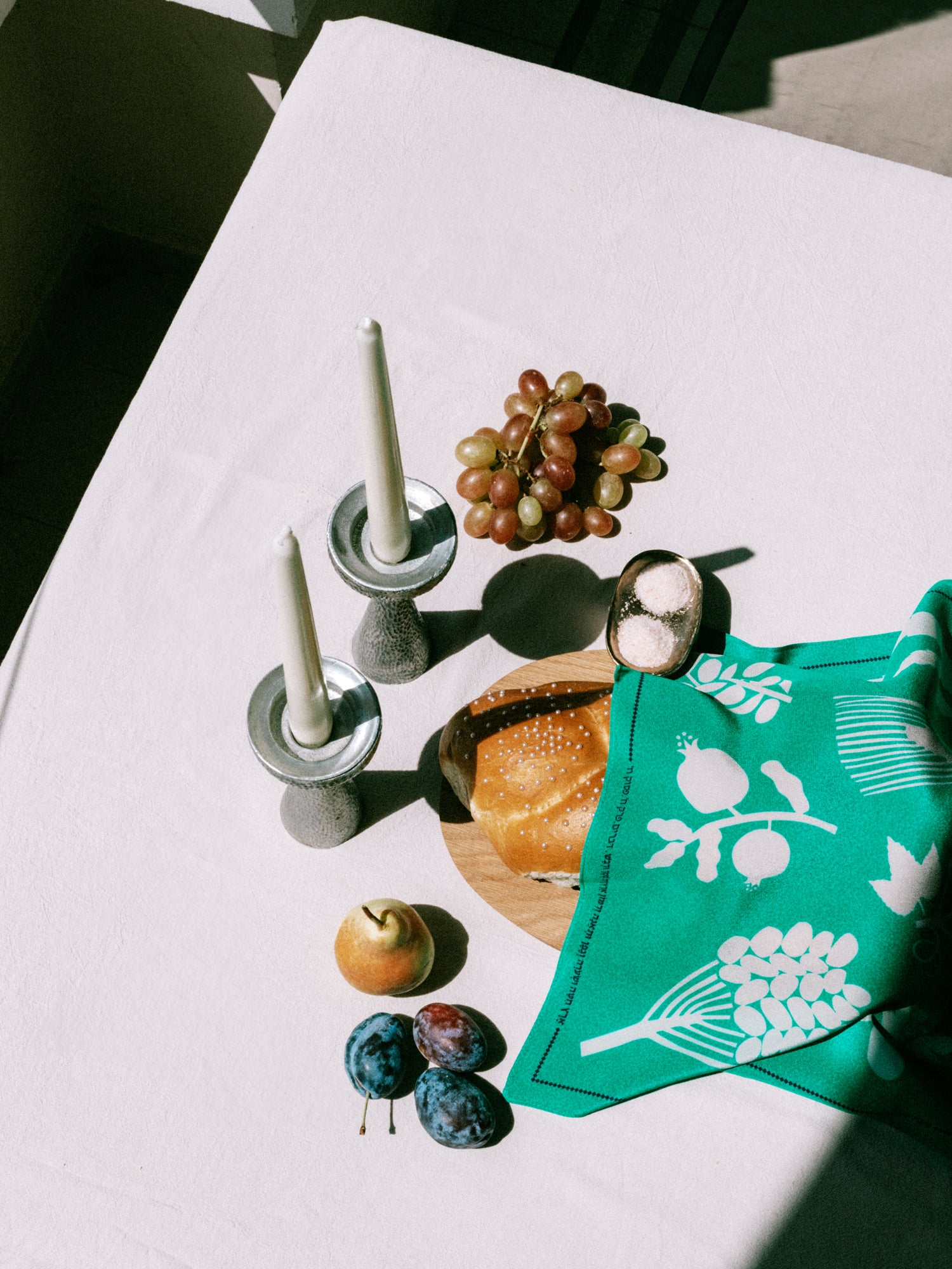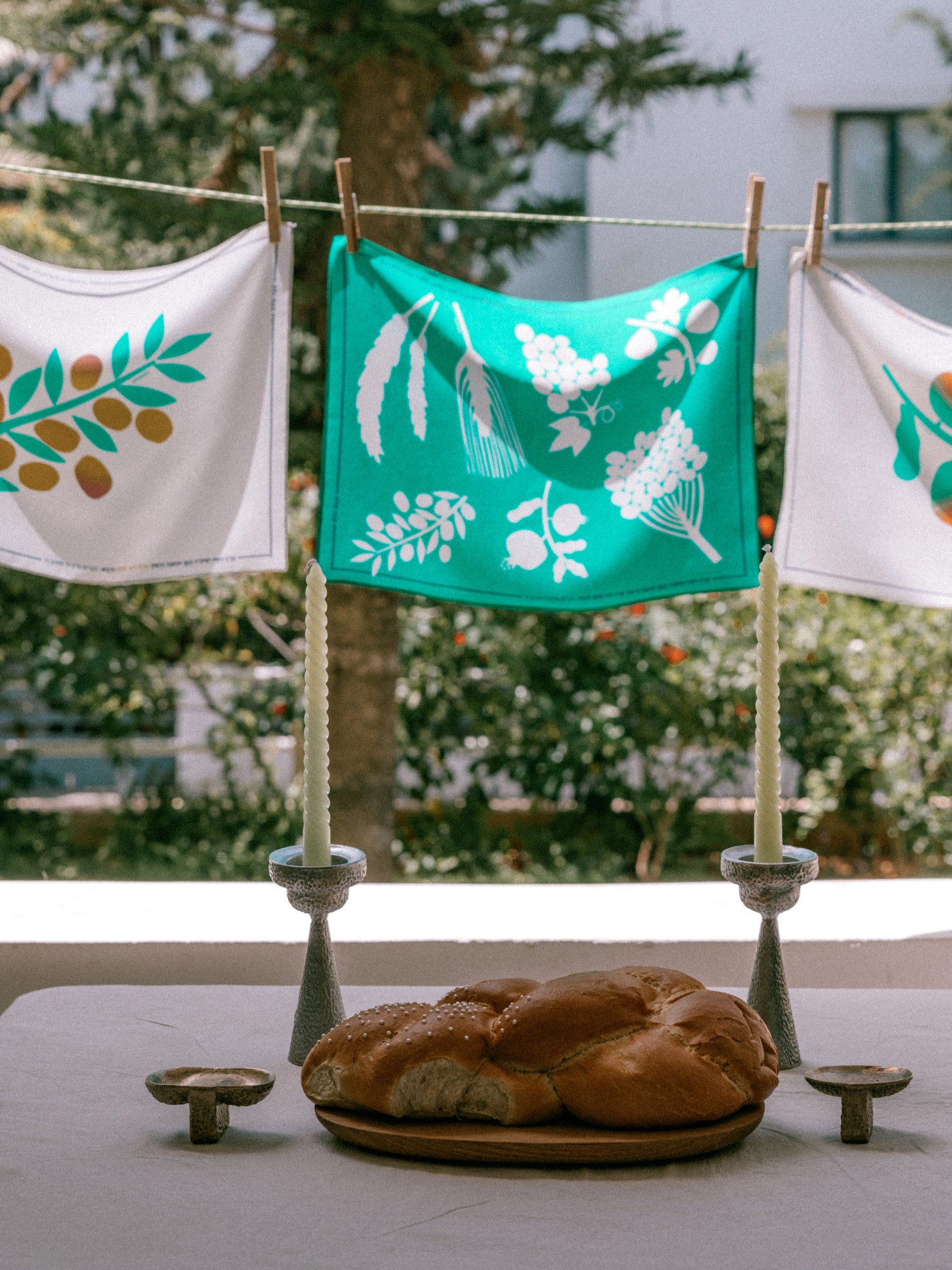 A cover that brings subtle richness, color, and movement to your Shabbat table.