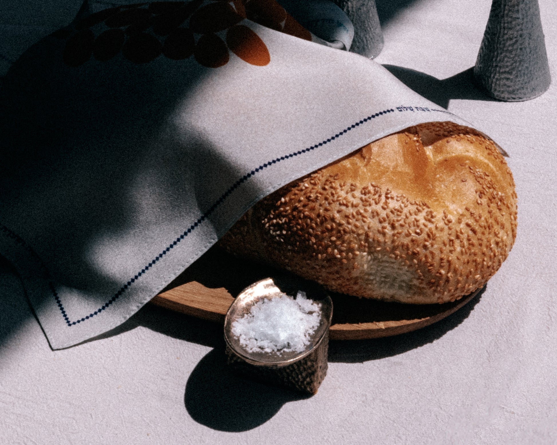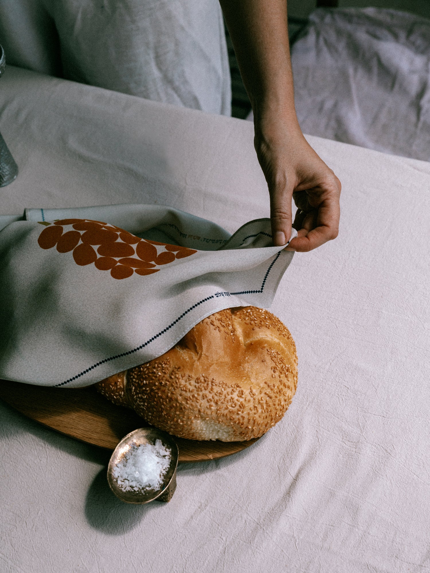 A cover that brings subtle richness, color, and movement to your Shabbat table.