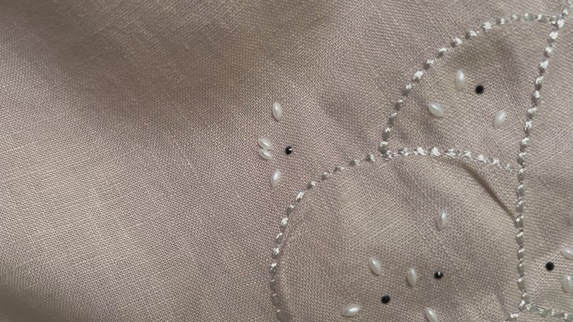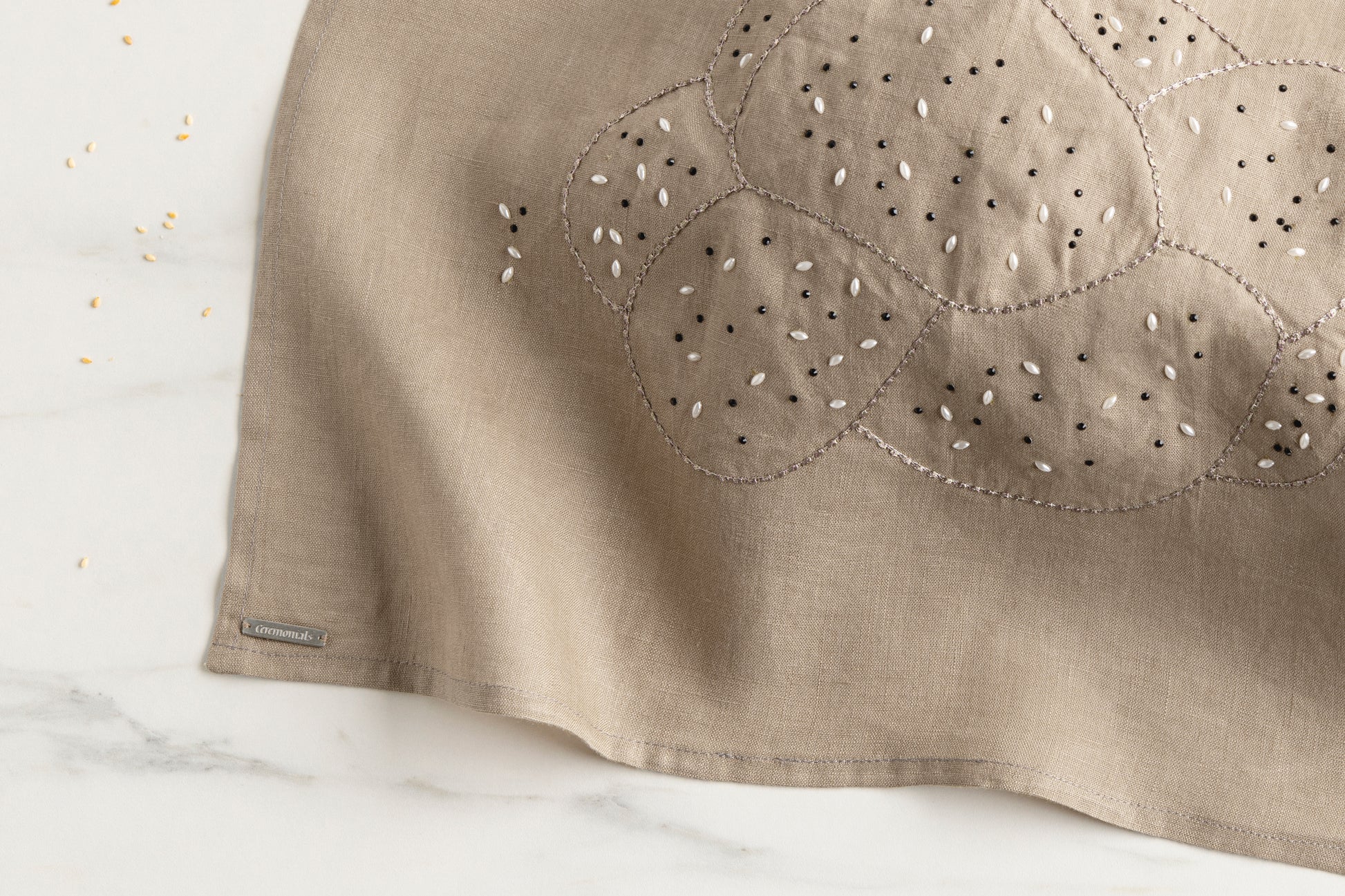 Ruth challah cover features a modern and clean design, delicately embroidered with a traditional challah motive and embellished with black crystal "poppy seeds" and pearl "sesame seeds" in order to create the perfect blend of sophistication and whimsy.