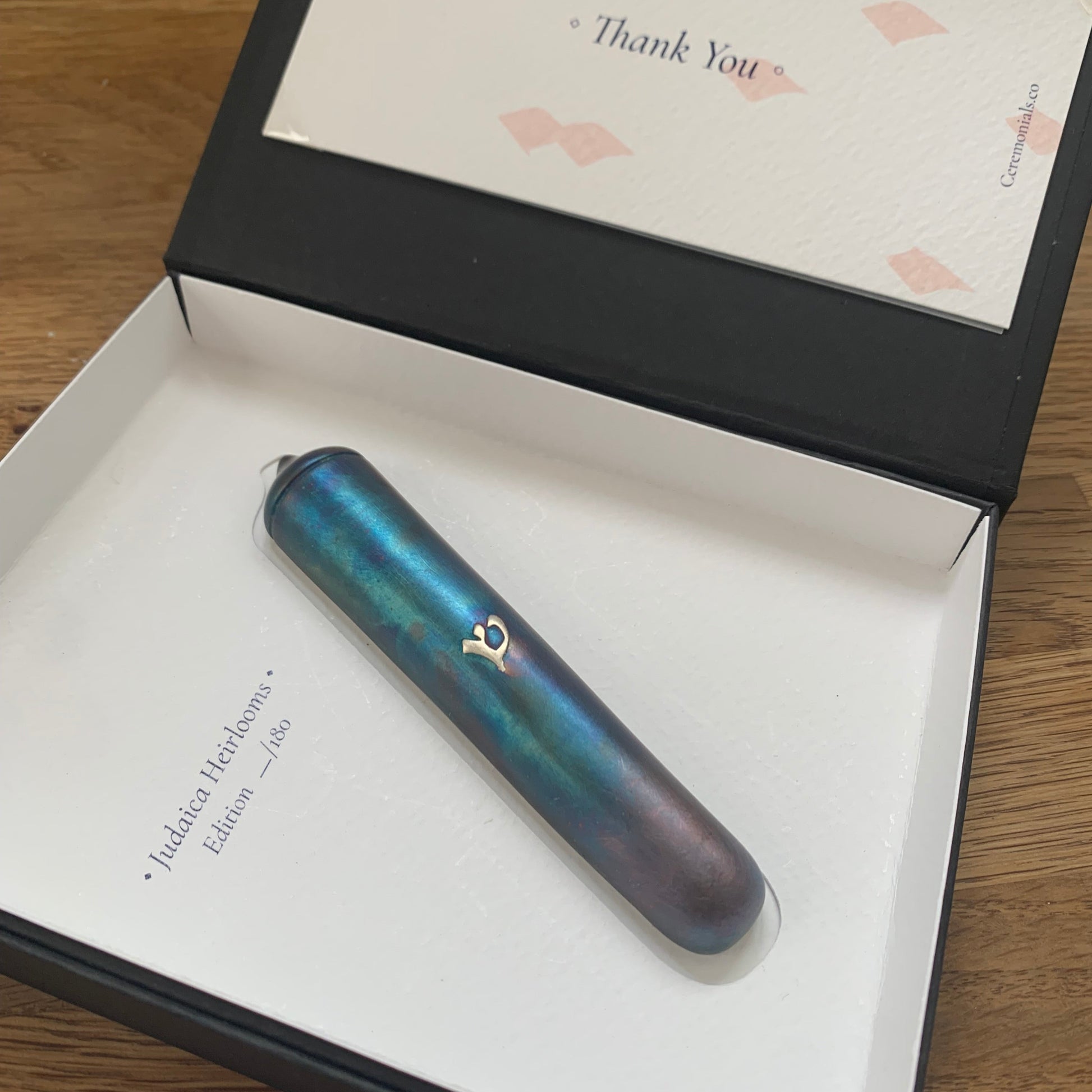 Ceremonials 'Scroll Mezuzah' elegant shape was inspired by ancient scroll jars found inside a cave at the Judean Desert.